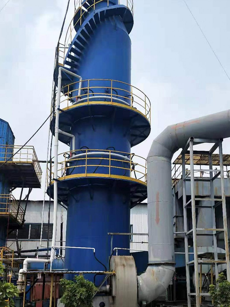 鈉-鈣雙堿法采用火堿吸收SO2 ,石灰還原再生,再生后吸收劑循環(huán)使用,無廢水排放。窯爐煙氣經(jīng)除塵器除塵后進(jìn)入脫硫塔,并與脫硫液中的堿性脫硫劑在霧化區(qū)內(nèi)充分接觸反應(yīng),完成煙氣的脫硫吸收。