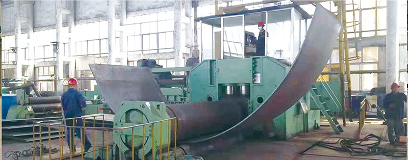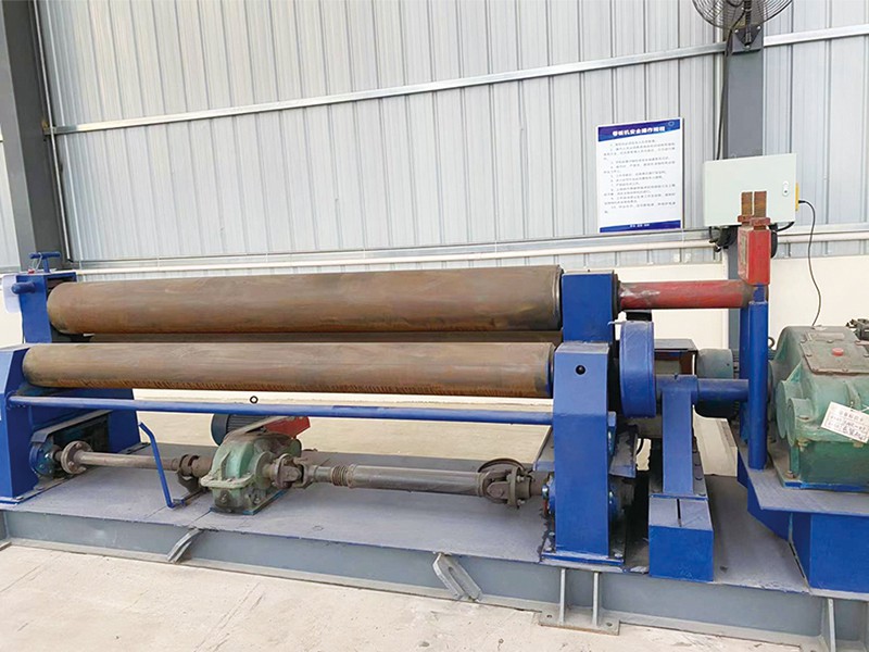 簡(jiǎn)析卷板機(jī)的工作原理及應(yīng)用范圍卷板機(jī)是對(duì)板料進(jìn)行連續(xù)點(diǎn)彎曲的塑形機(jī)床,具有卷制O 同的形狀卷板機(jī)規(guī)格平整的塑性金屬板通過卷板機(jī)的三根工作輥(二根下輥、一根上輥) 之間,借助上輥的下壓及下輥的旋轉(zhuǎn)運(yùn)動(dòng),使金屬板經(jīng)過多道次連續(xù)彎曲(內(nèi)層 壓縮變形,中層不變,外層拉伸變形),產(chǎn)生塑性變形,卷制成所需要 的圓筒、錐筒或它們的一部分。 卷板機(jī)的工作原理是卷板機(jī)上輥在兩下輥中央對(duì)稱位置通過液壓缸內(nèi)的液壓油作用于活塞作垂直升降運(yùn)動(dòng),通過主減速機(jī)的末級(jí)齒輪帶動(dòng)兩下輥齒輪嚙合作旋轉(zhuǎn) 運(yùn)動(dòng),為卷制板材提供扭矩。借助上輥的下壓及下輥的旋轉(zhuǎn)運(yùn)動(dòng),使金屬板經(jīng)過 多道次連續(xù)彎曲,產(chǎn)生塑性變形,卷制成所需要的園筒、錐筒或它們的一部分。